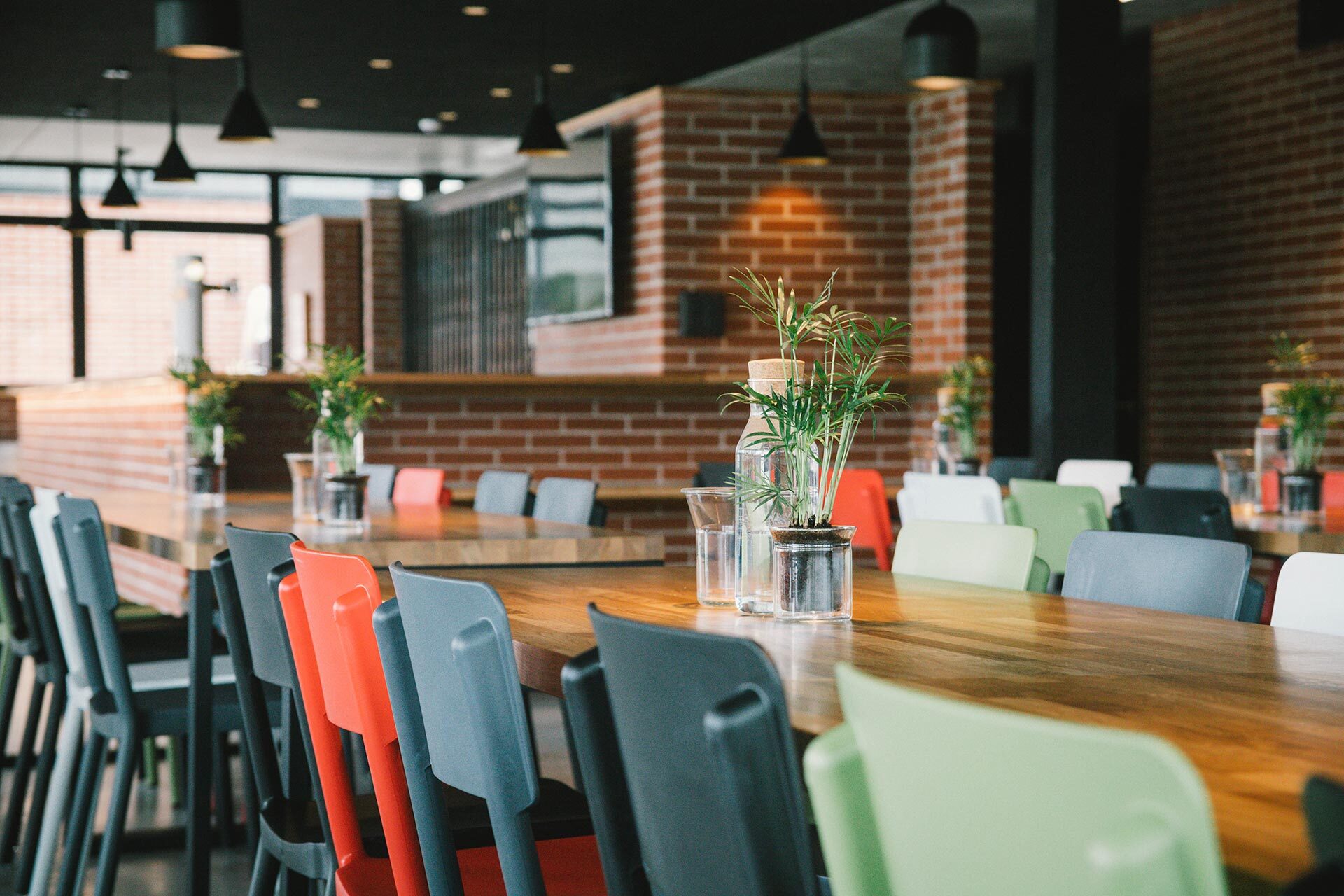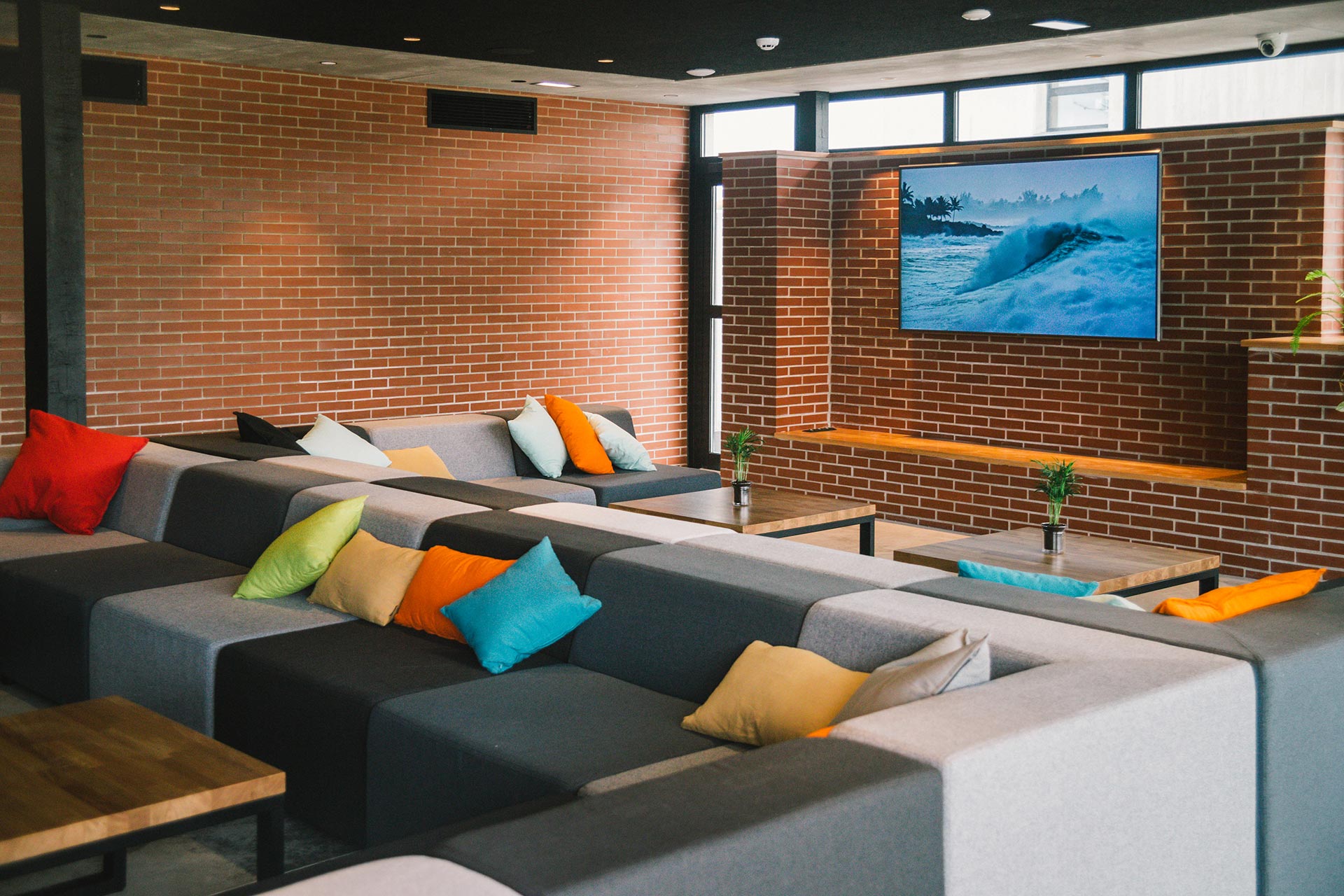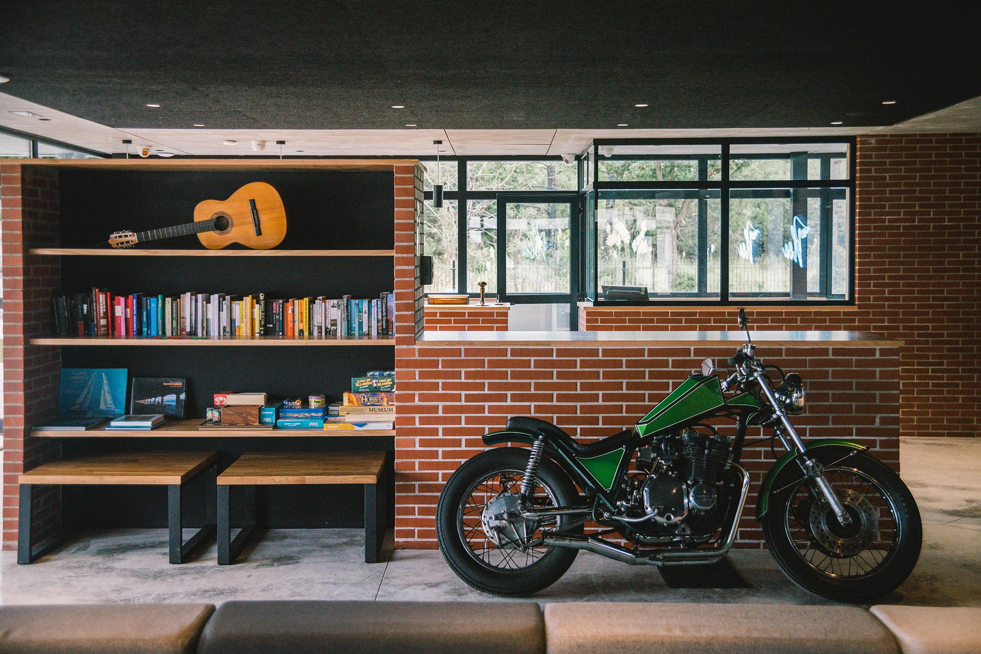En los espacios públicos se crea un ambiente desenfadado y amable con colores vivos en el mobiliario y una estética urbana que combina la firmeza del hormigón, la sencillez del ladrillo y la calidez de la madera. El interior se dilata hacia el exterior gracias a las grandes cristaleras y al tratamiento de los materiales y la vegetación que se prolonga hacia el exterior.