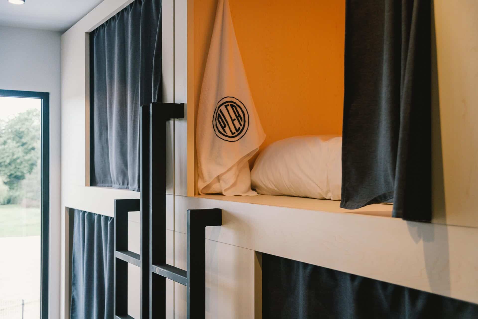 En los espacios de descanso, se busca compaginar el carácter colectivo propio de un albergue, con el carácter privado propio de un hotel. Para ello se diseñan unos boxes de madera clara dentro de las habitaciones que permiten a los huéspedes contar con un espacio de privacidad y autonomía.