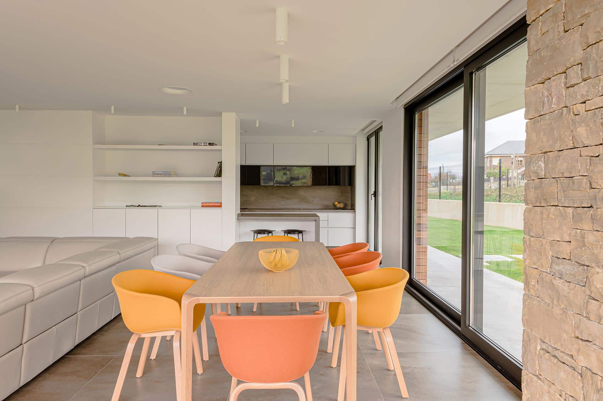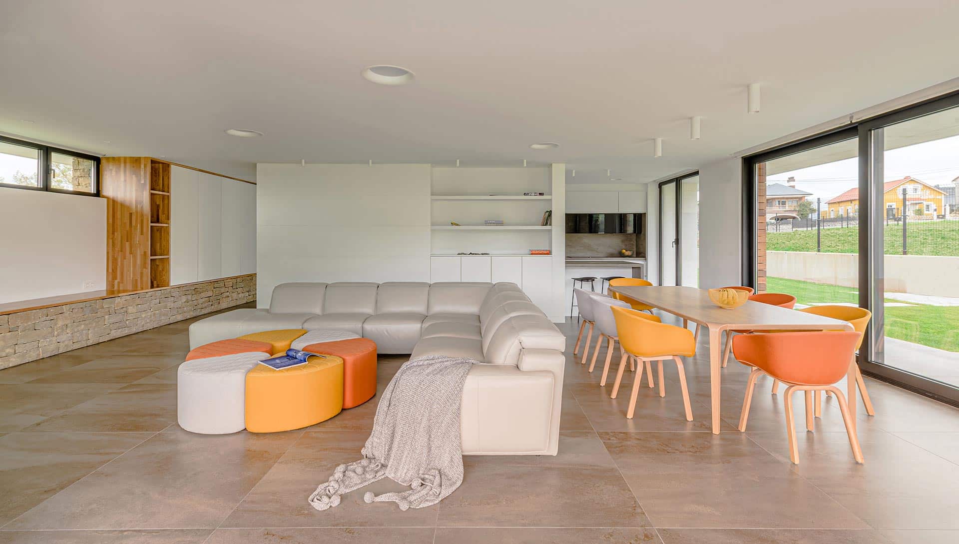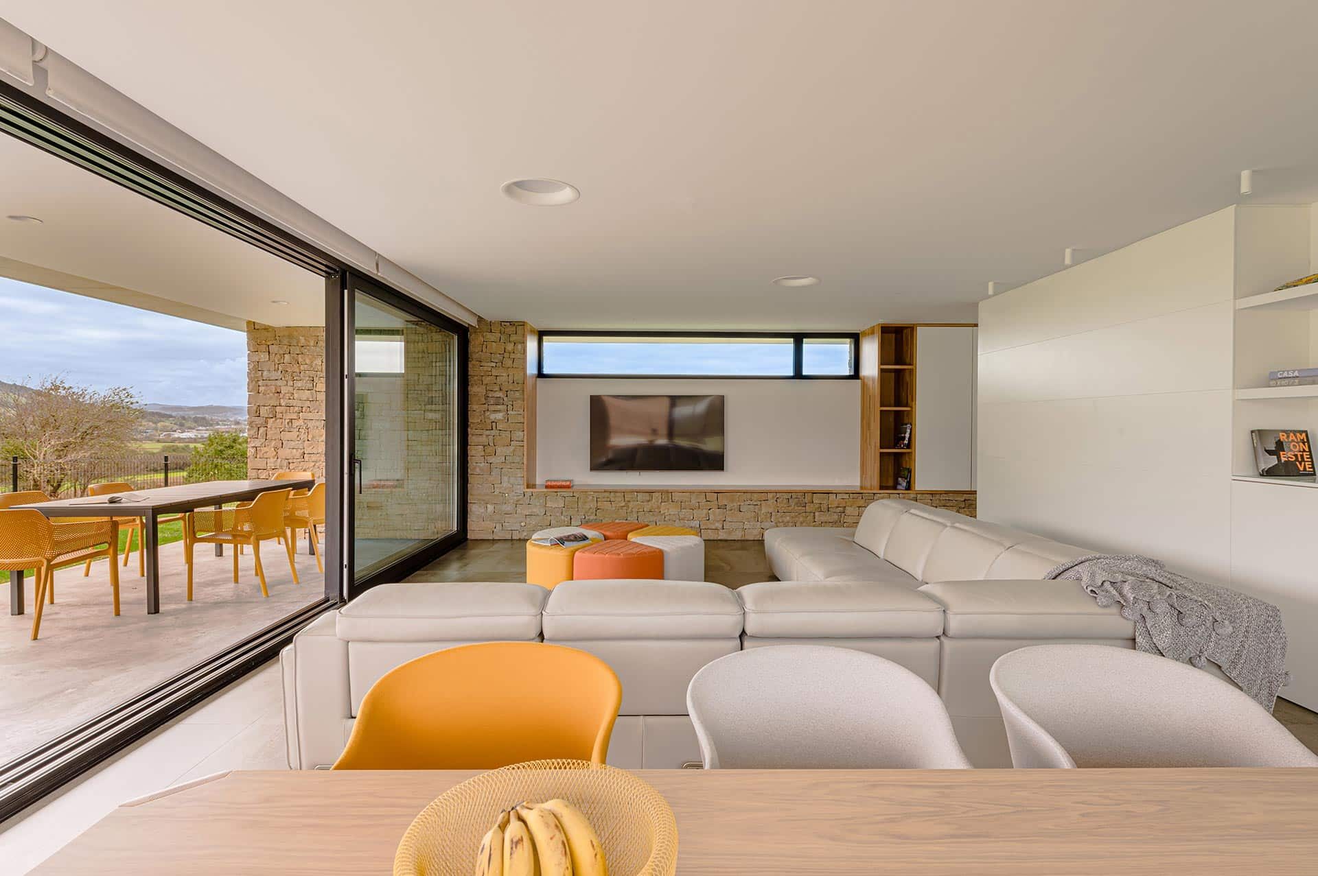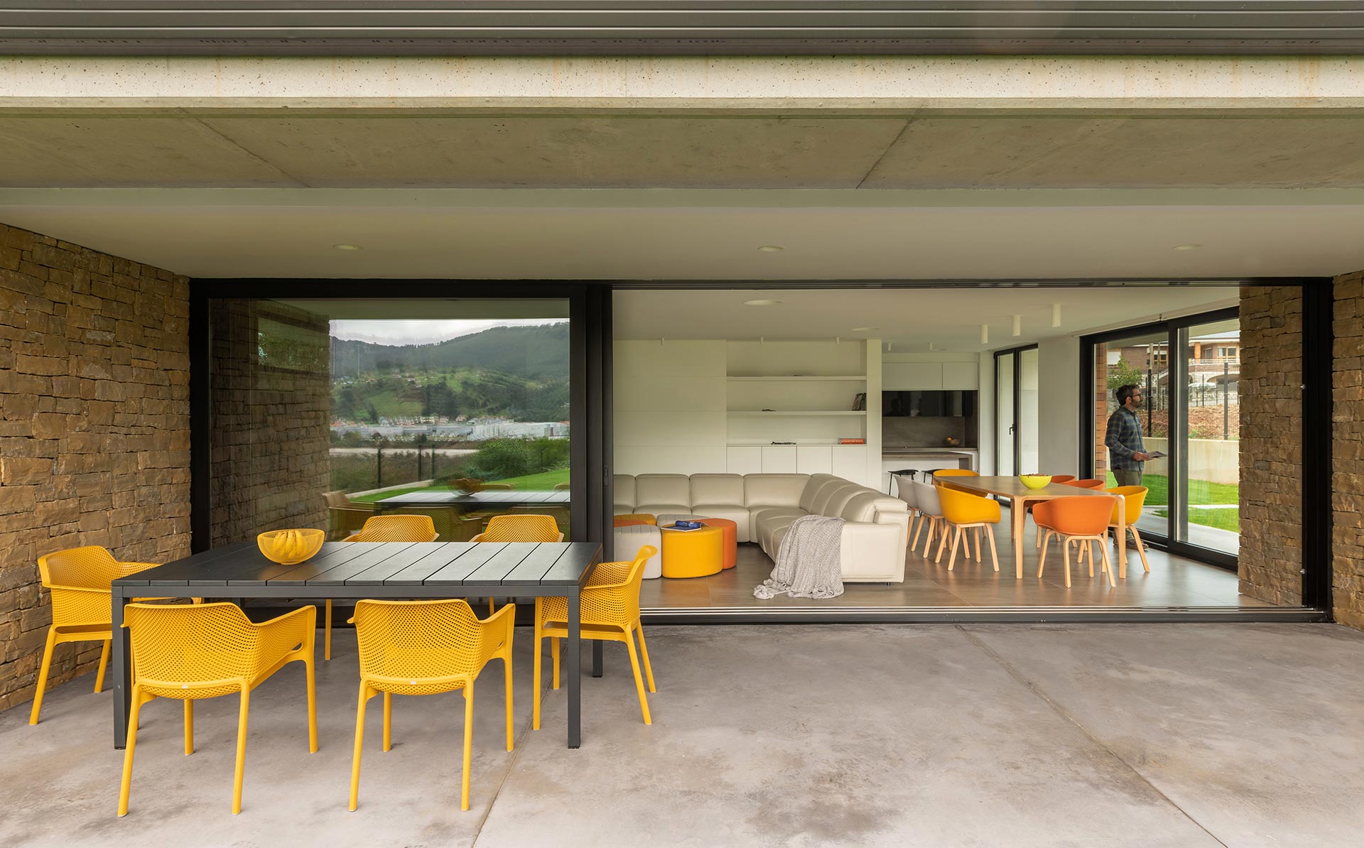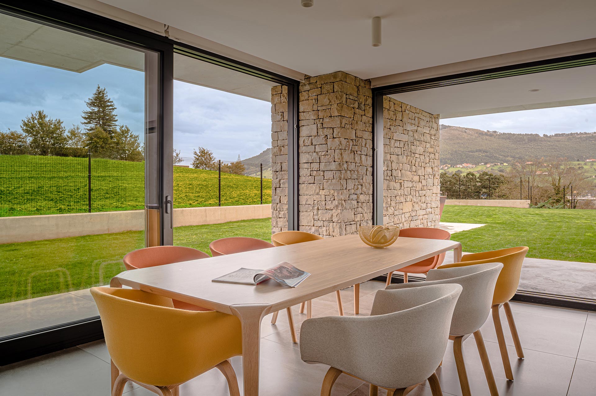 Esta vivienda, ubicada en el término municipal de Marina de Cudeyo, reinterpreta la arquitectura tradicional de la zona, conviviendo los materiales vernáculos y las cubiertas inclinadas, con vestigios contemporáneos y líneas generales de marcada tendencia horizontal. El uso de materiales como la mampostería, la cerámica y la madera, conviven con las líneas minimalistas interiores en tonos claros y con grandes ventanales en todas sus fachadas, dando como resultado una vivienda muy adaptada a su entorno, abierta al espacio exterior y muy funcional.