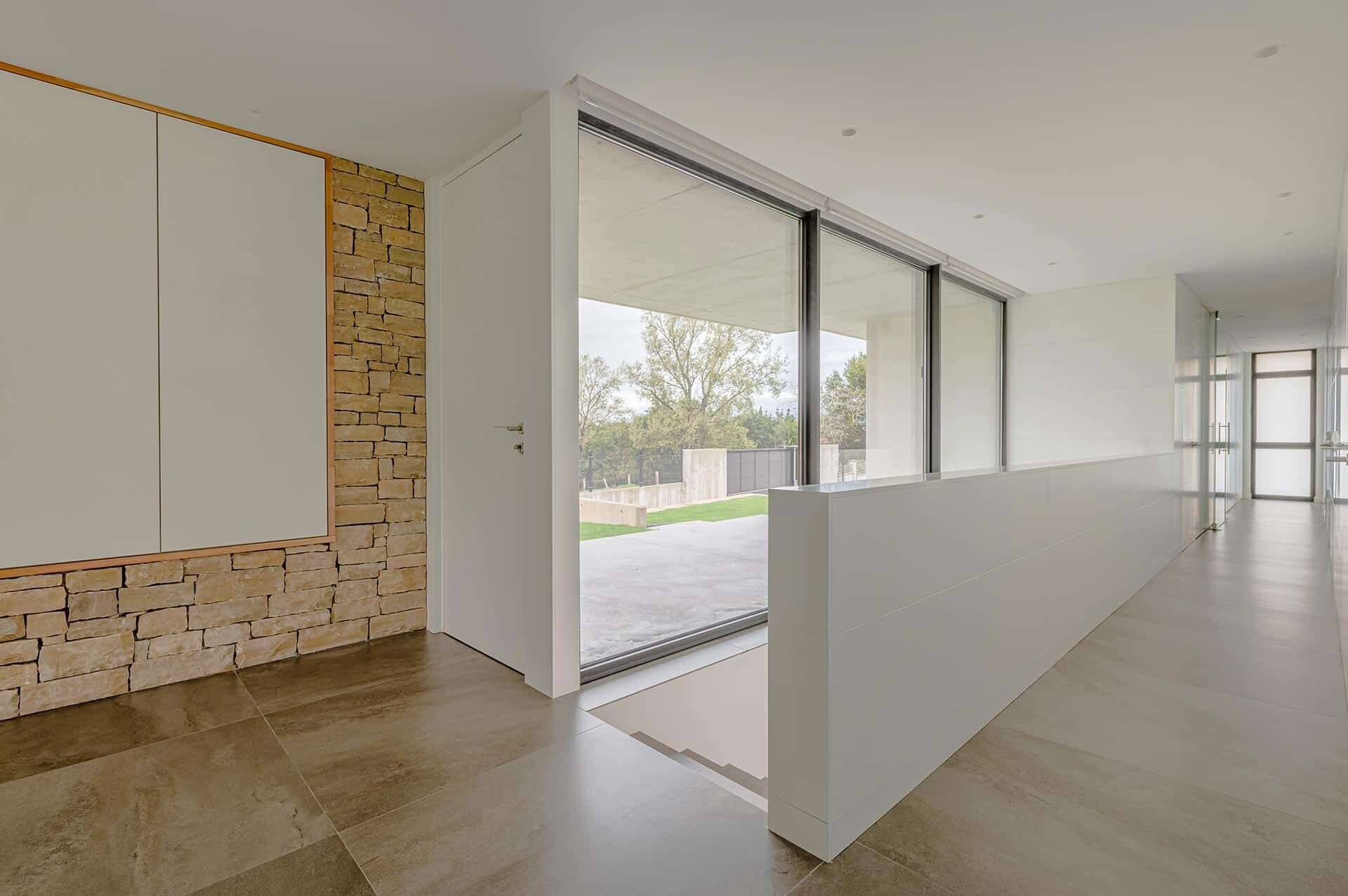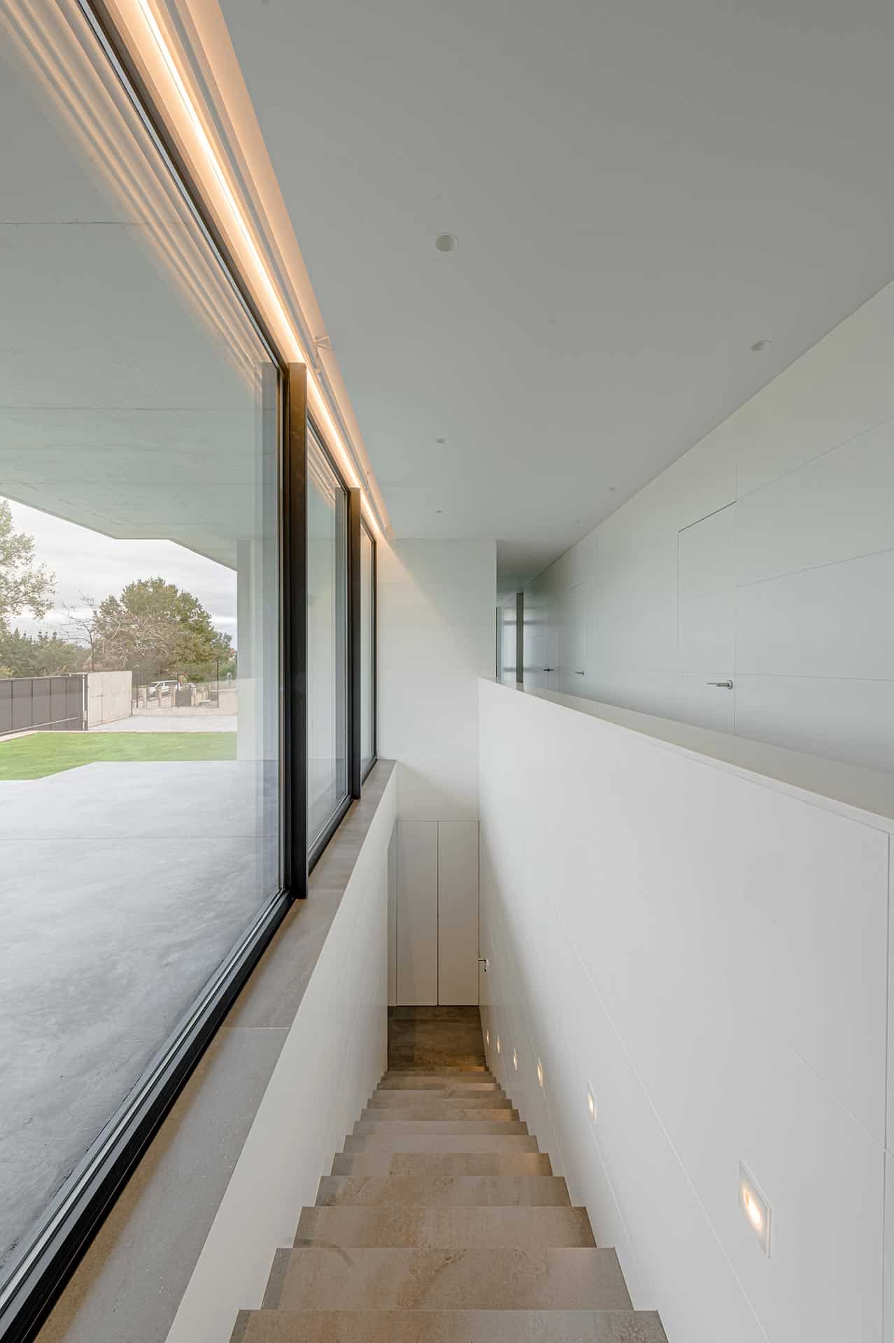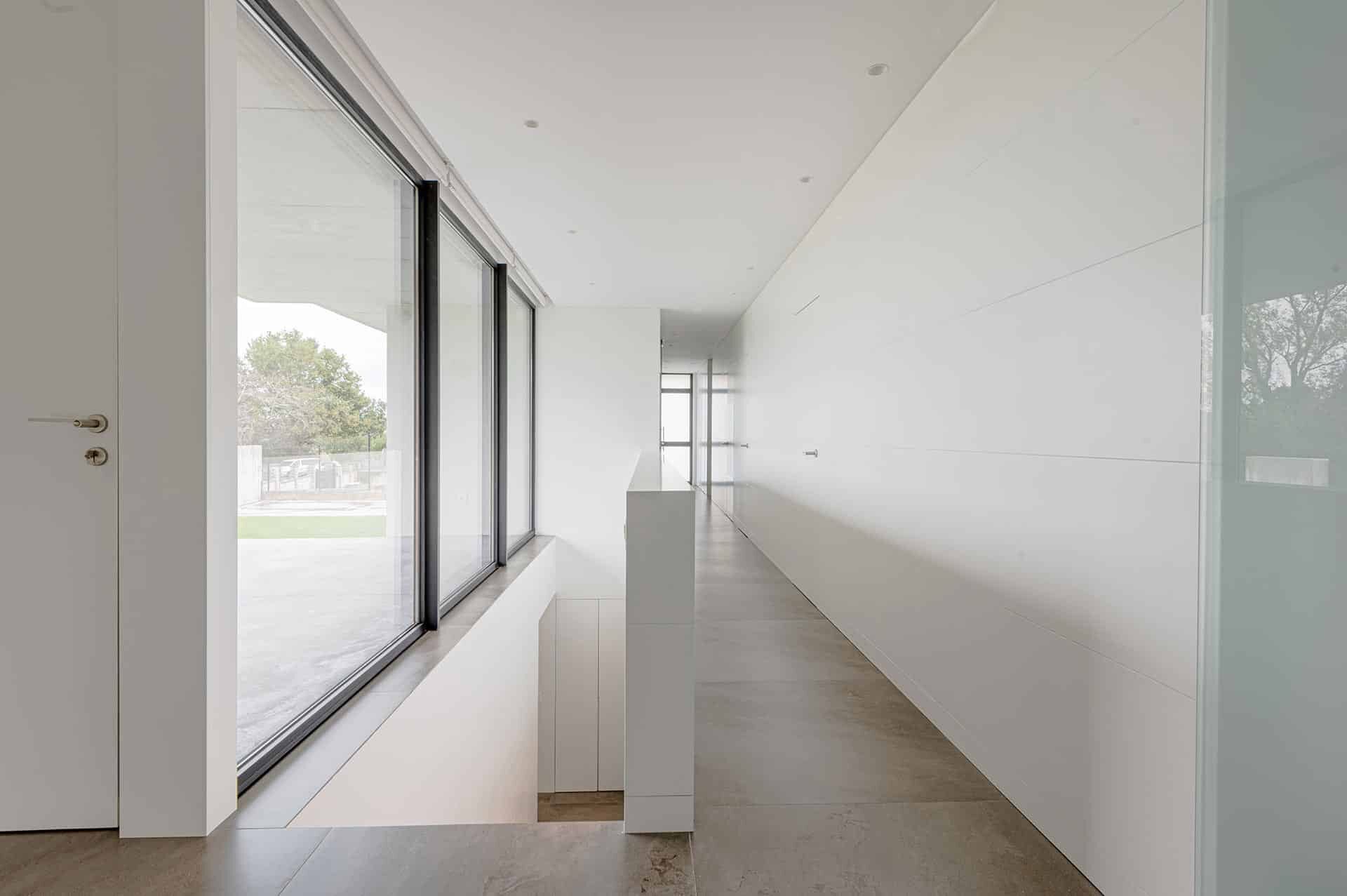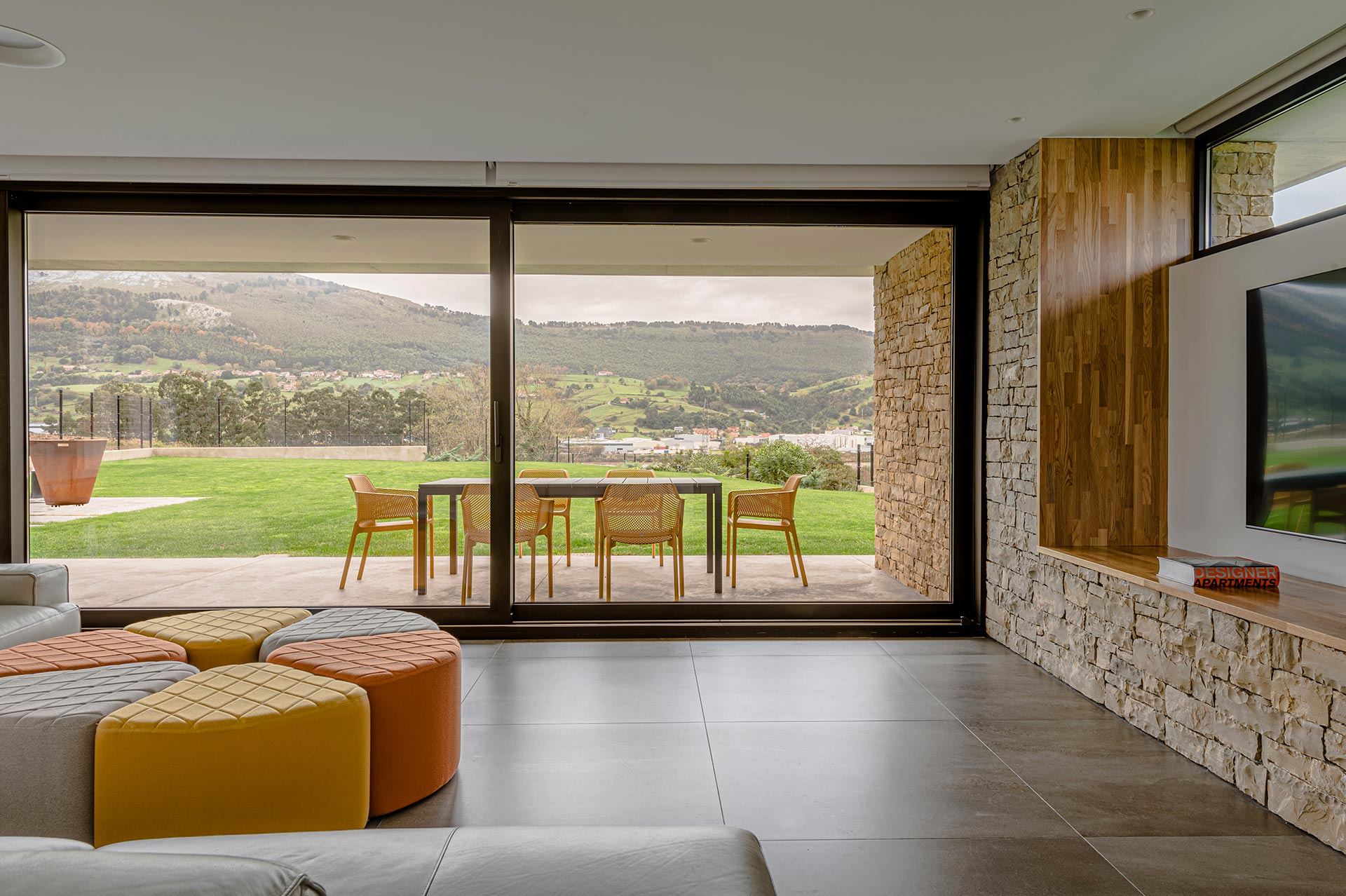 Con una vista predominante hacia el macizo de Peña Cabarga, el volumen de la planta baja se emplaza de manera que la mayor cantidad de recintos abran hacia las vistas al este, mientras que el gran espacio compuesto por el salón, comedor, y cocina, abre totalmente al Sur a través de un porche intermedio, que atenúa la radiación en los meses más calurosos. Los dormitorios están orientados al sol naciente con salida directa al jardín y las estancias de servicio (baños, vestidor…) se encuentran agrupados y orientados hacia el viento más duro, el Oeste.