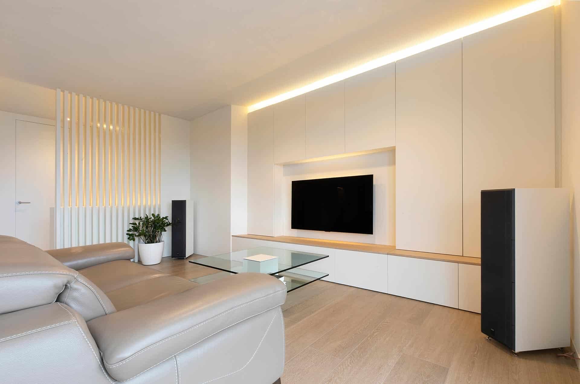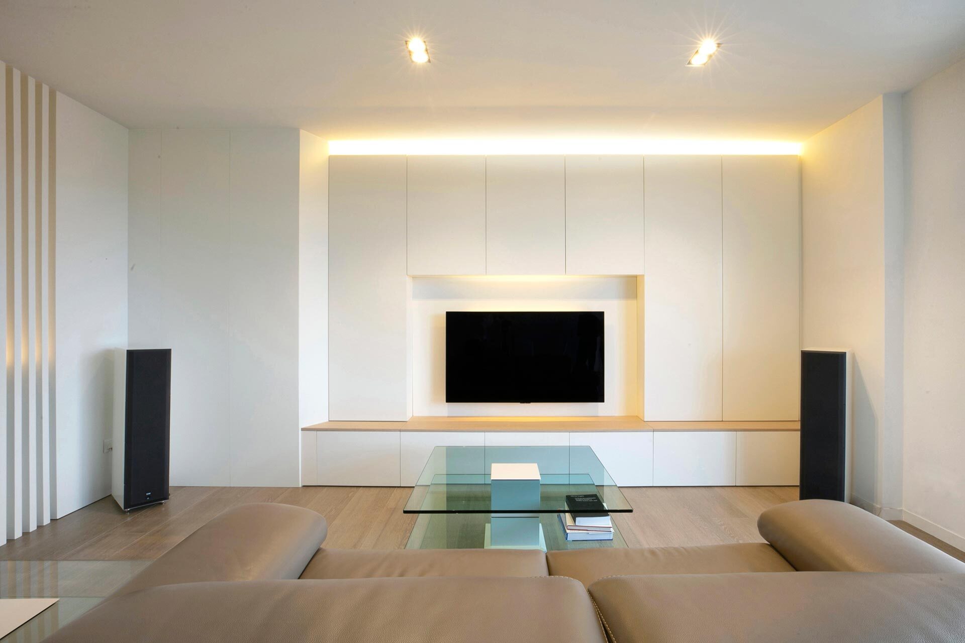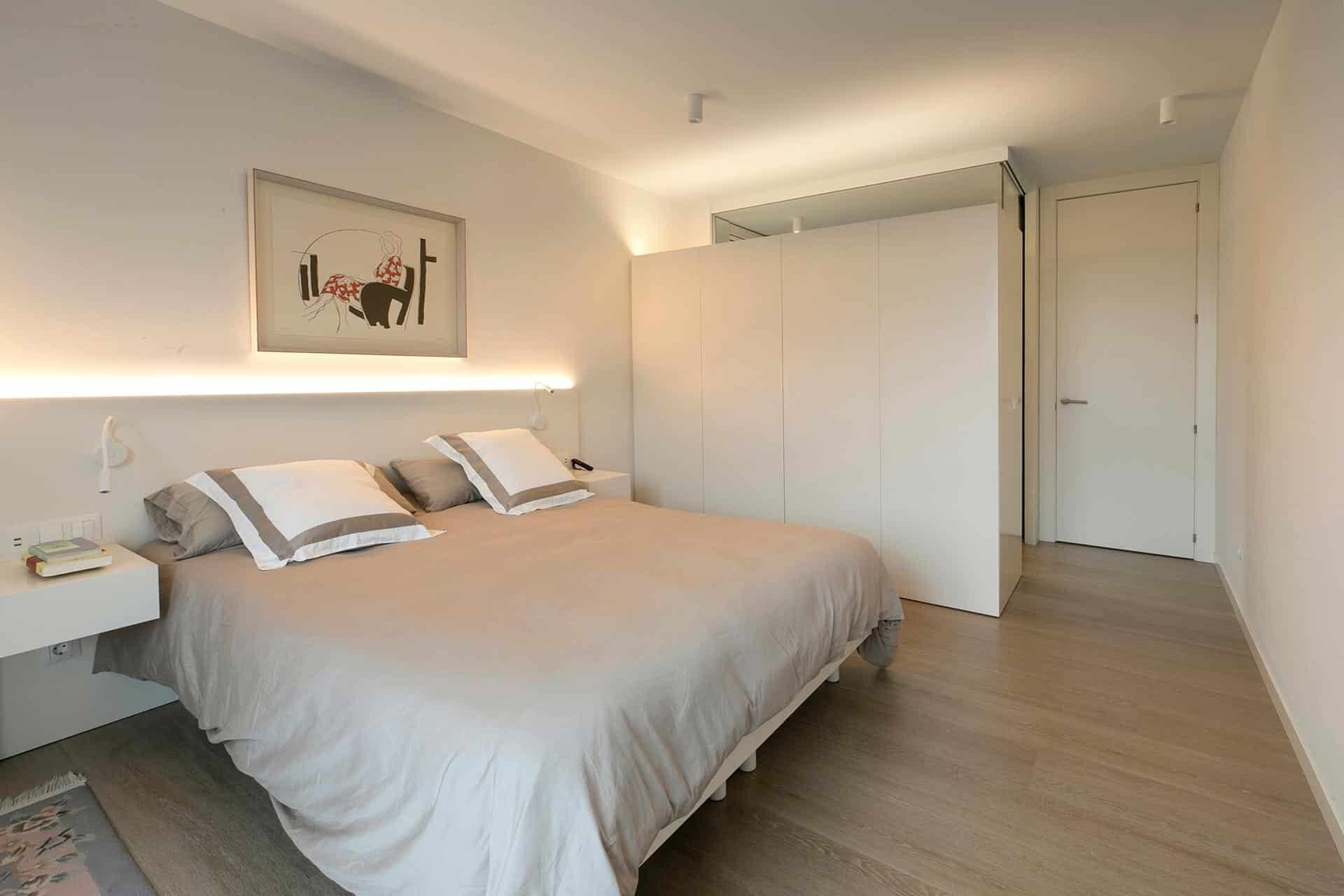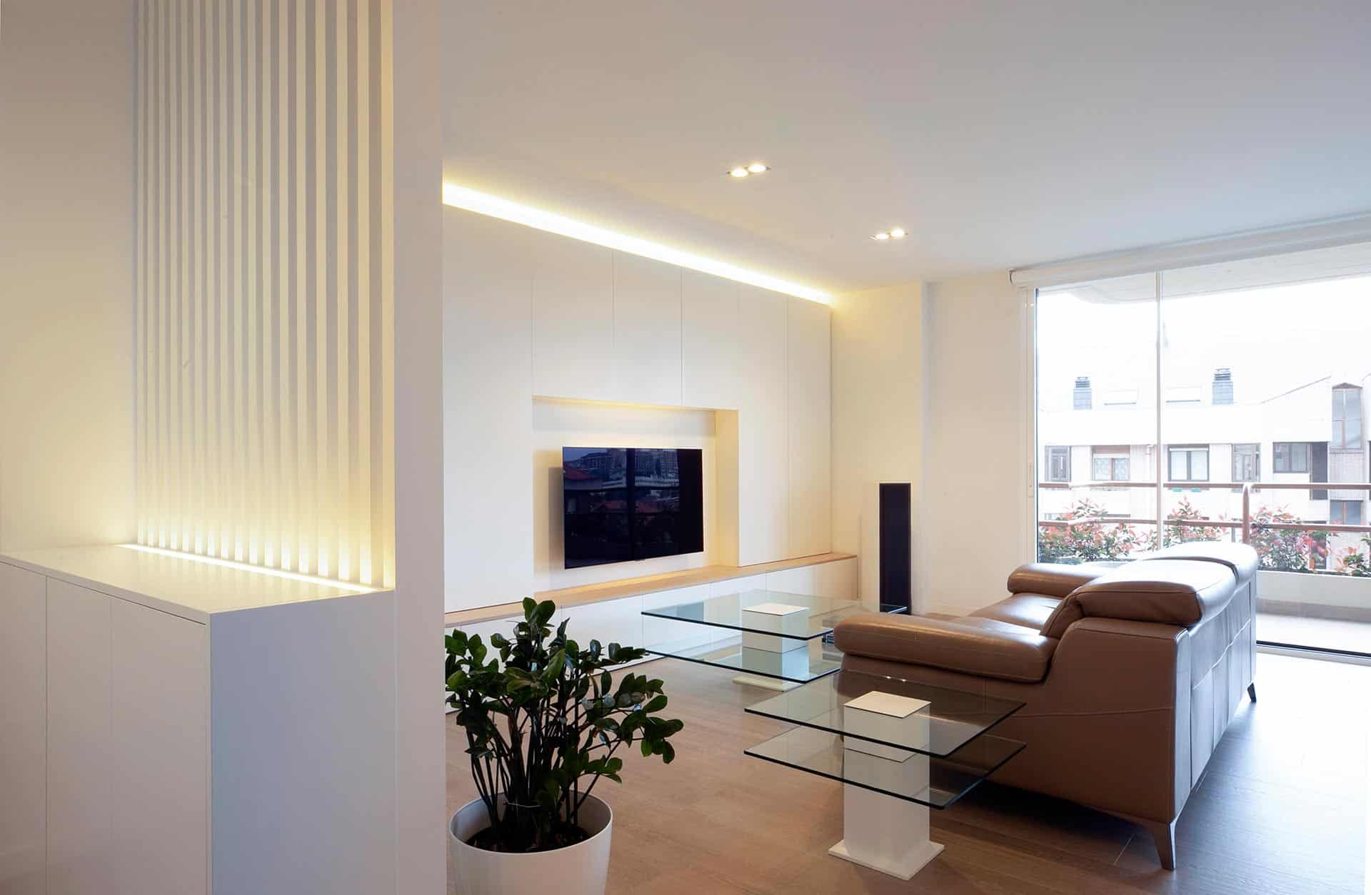 Para dotar de mayor calidez en las estancias, se iluminan toda la vivienda con luces indirectas ocultas en el mobiliario, que se pueden regular en intensidad consiguiendo distintos ambientes adaptados a cada momento del día.