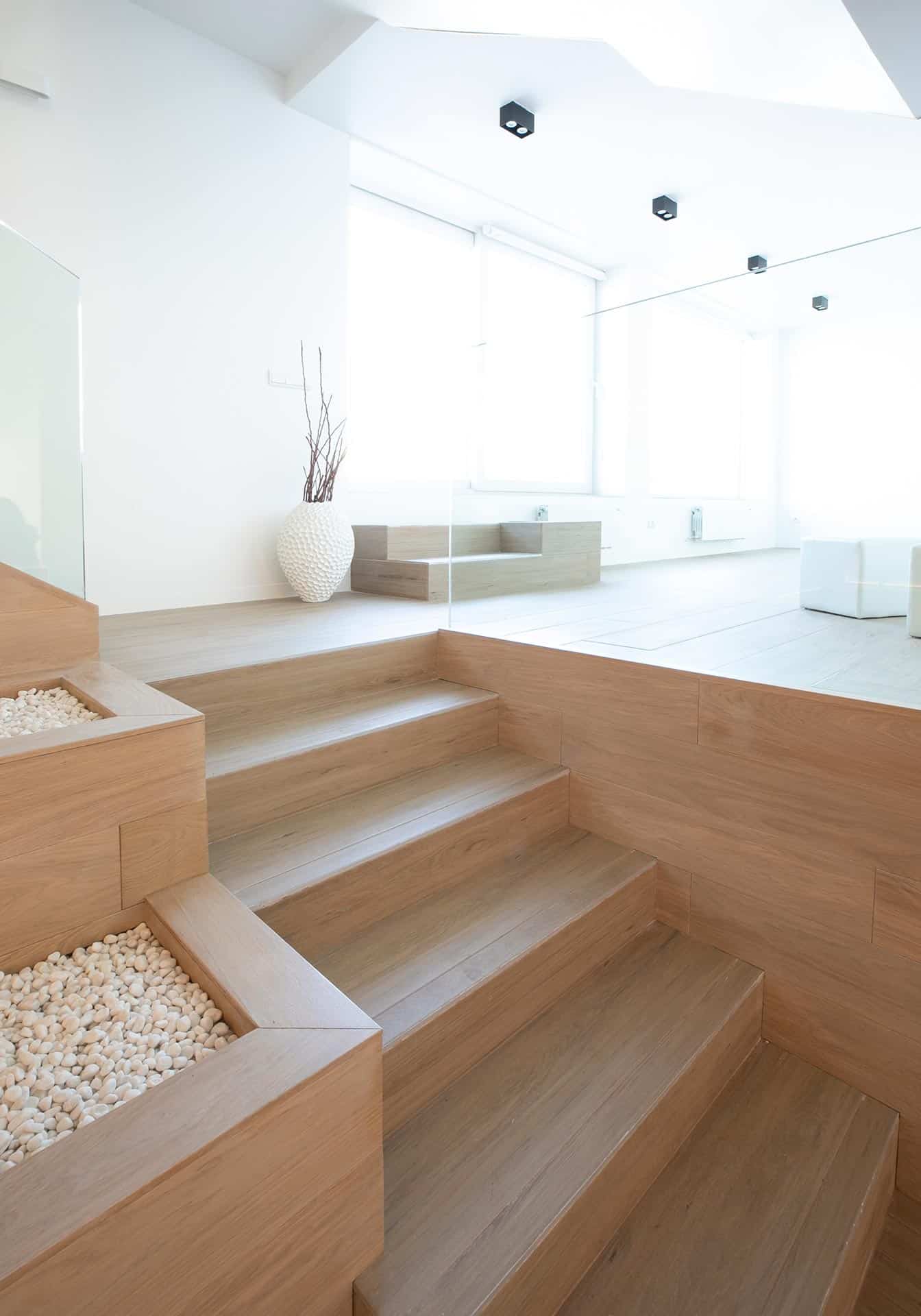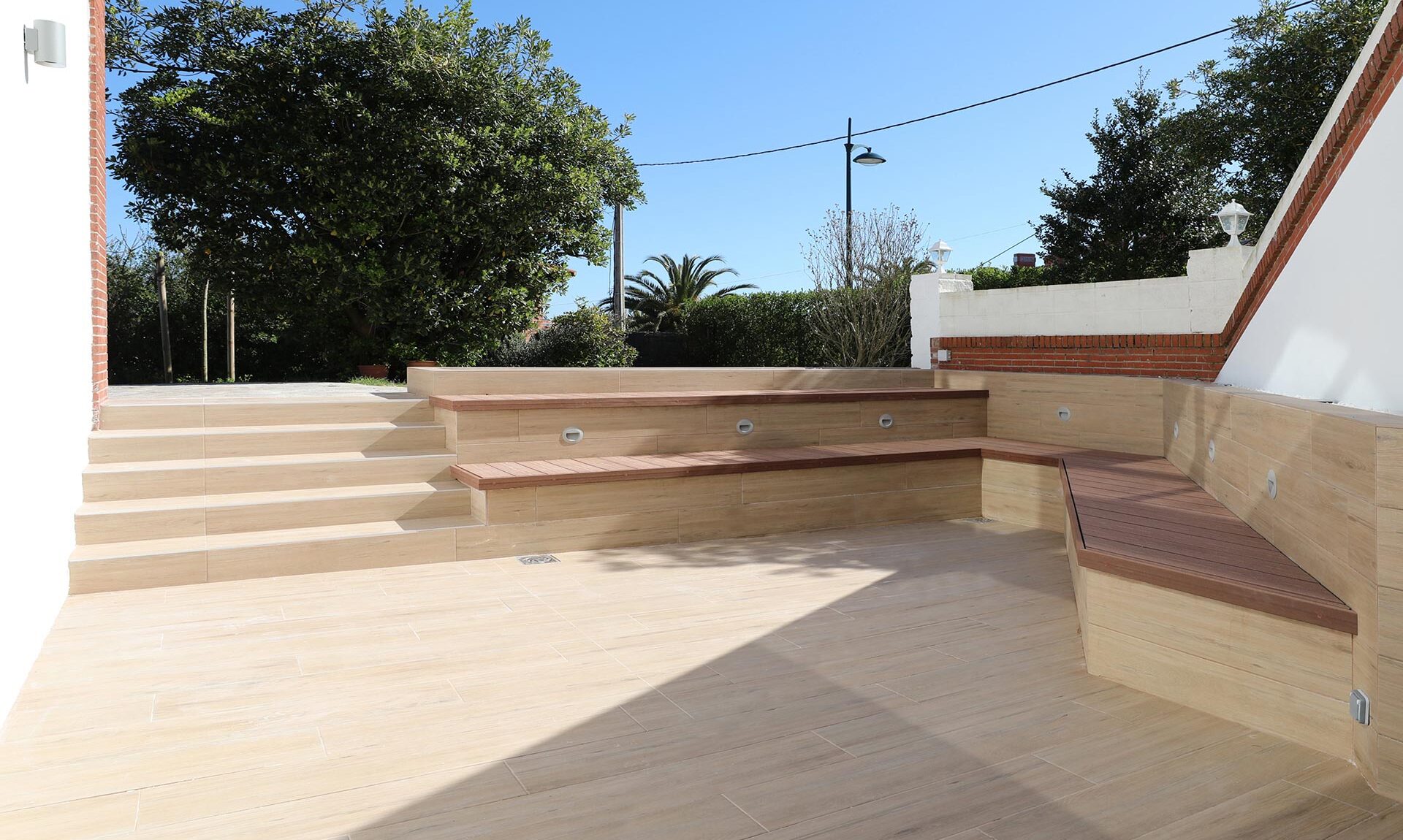 Un patio inglés en desuso también queda integrado en la reforma: el diseño de unas gradas realizadas en madera y la apertura de un gran hueco de vidrio en la fachada ofrecen la continuidad interior-exterior deseada.