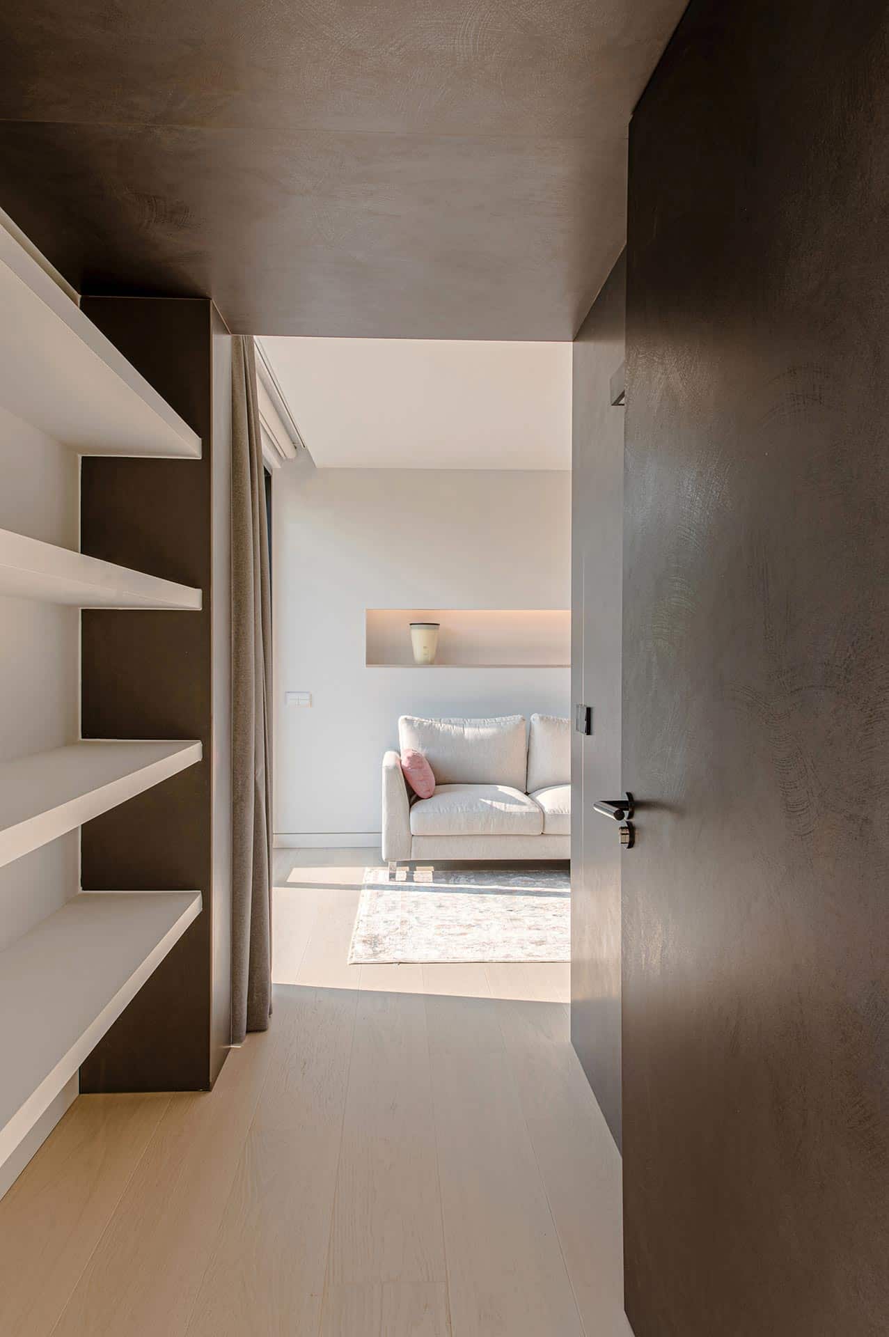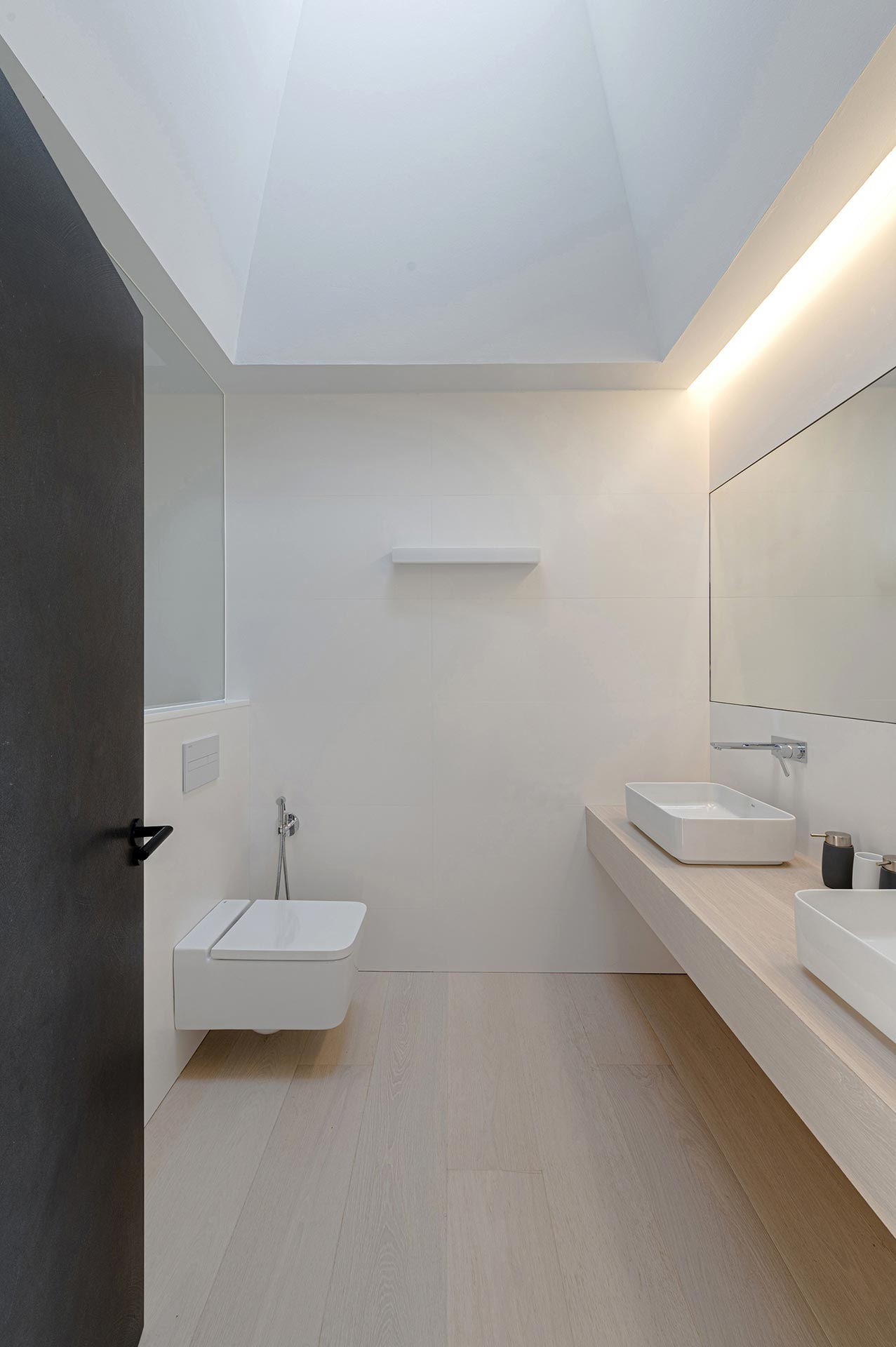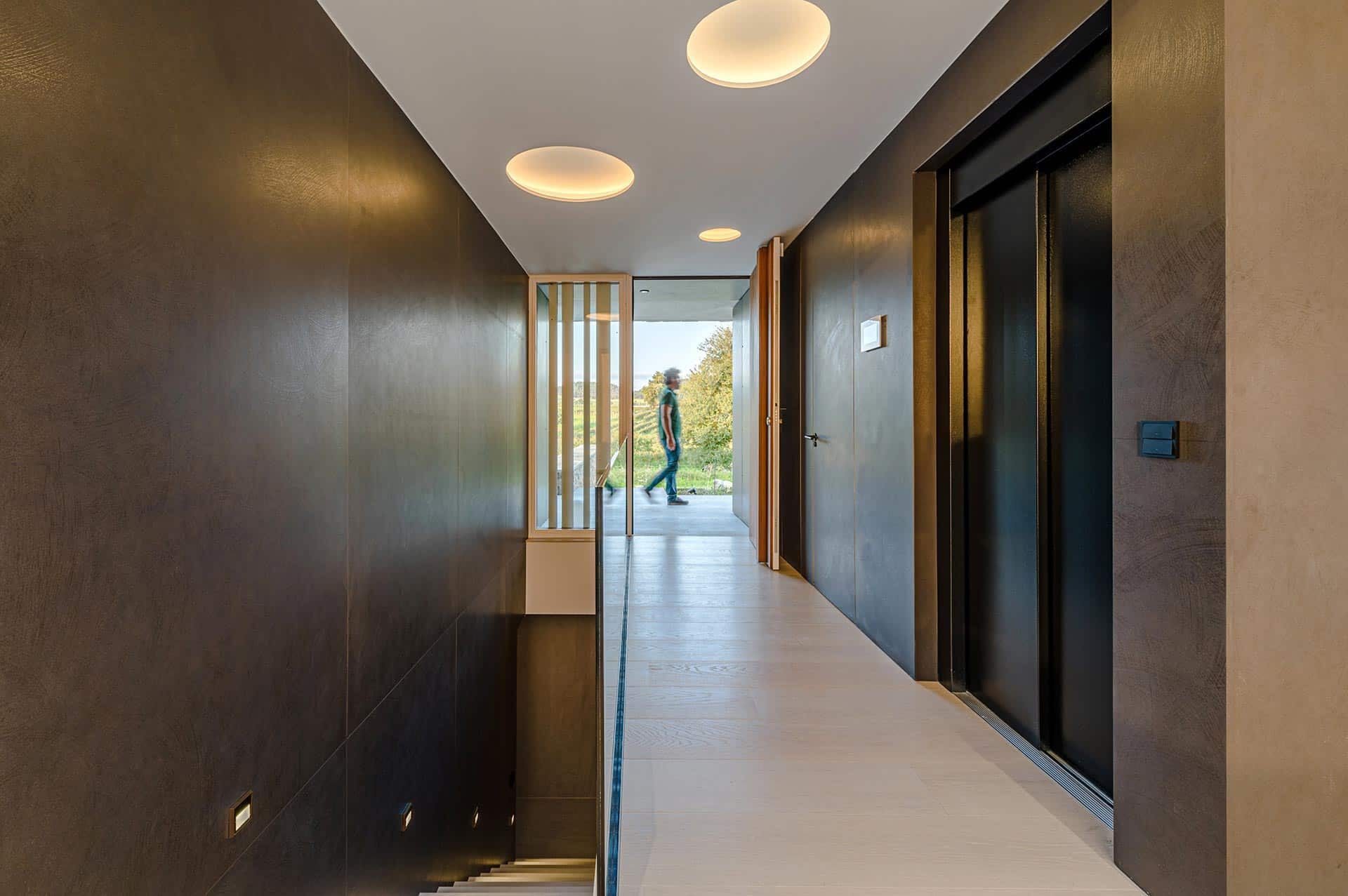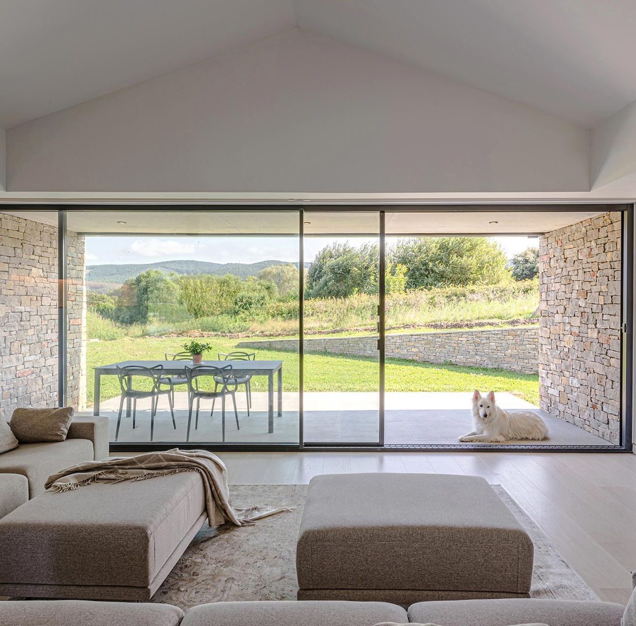 La relación ente el interior y el exterior se desdibuja mediante el empleo de porches y aleros que dilatan el espacio interior. Para dirigir el enfoque y enmarcar las vistas exteriores, se emplea un elegante gres porcelánico de tonos tostados que contrasta con la claridad introducida por las superficies acristaladas.
